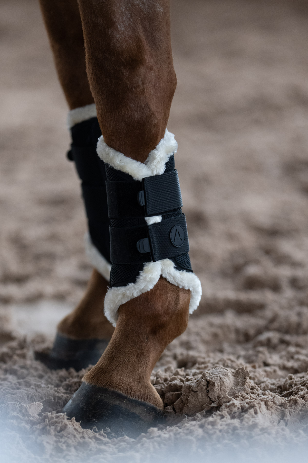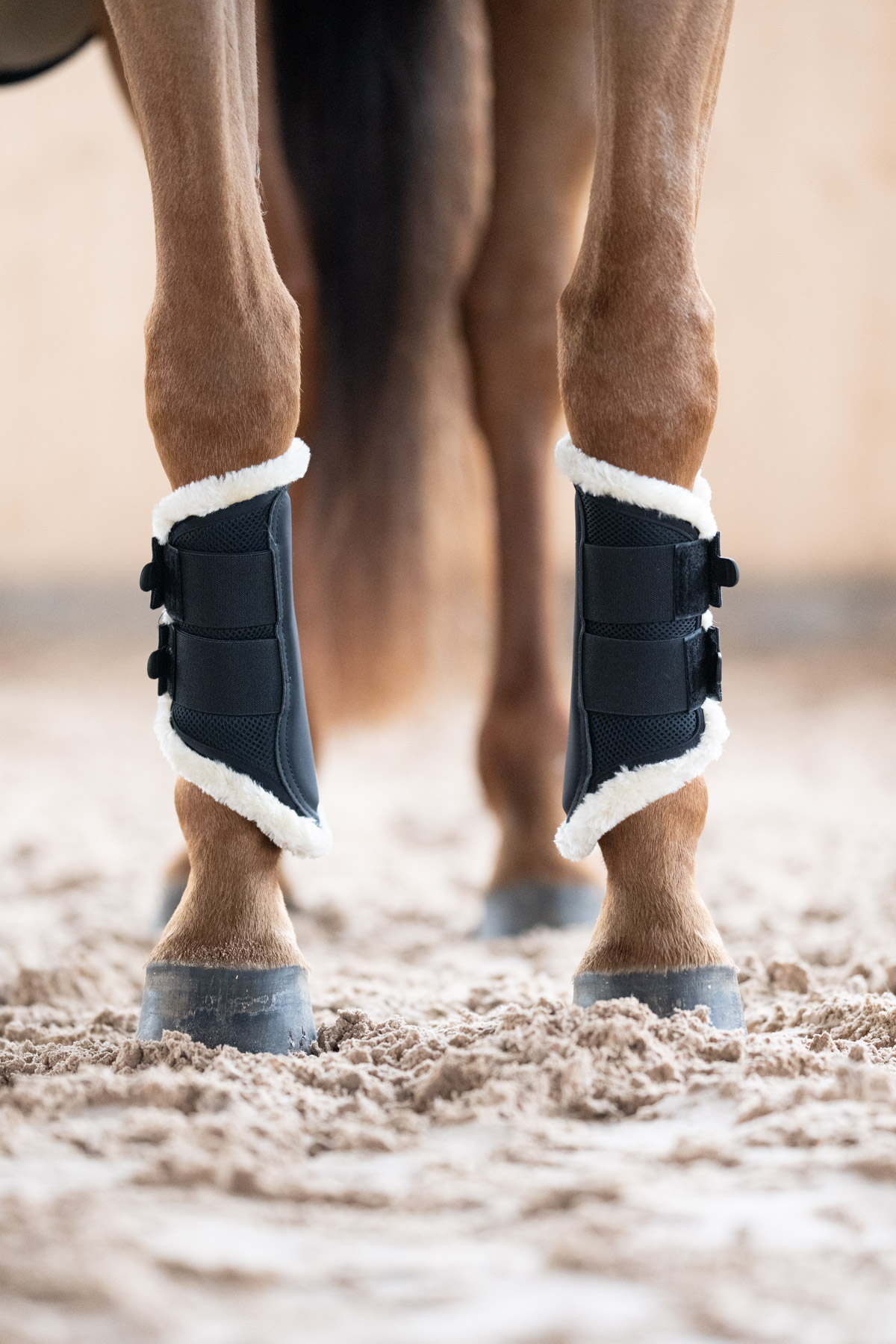 Dessa stövlar är inte bara praktiska utan också otroligt bekväma. Deras anatomiska design garanterar en åtsittande passform som inte kompromissar med komforten. Stövlarna har dubbla generösa och säkra remmar som är enkla att justera, så att du hittar den perfekta passformen för din häst. Stövlarna har också mjuk fuskpäls, vilket garanterar både komfort och stil, vilket gör dem idealiska för känsliga hästar.