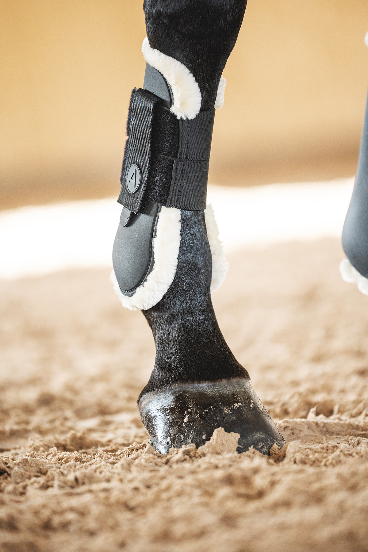 Tillverkade av starkt och lätt material är stövlarna byggda för att hålla länge samtidigt som de garanterar en bekväm passform. Det mjuka pälsfodret förhindrar skav och ger en dämpad upplevelse för din häst. De säkra kardborrebanden med resår håller stövlarna ordentligt på plats under varje ridtur.