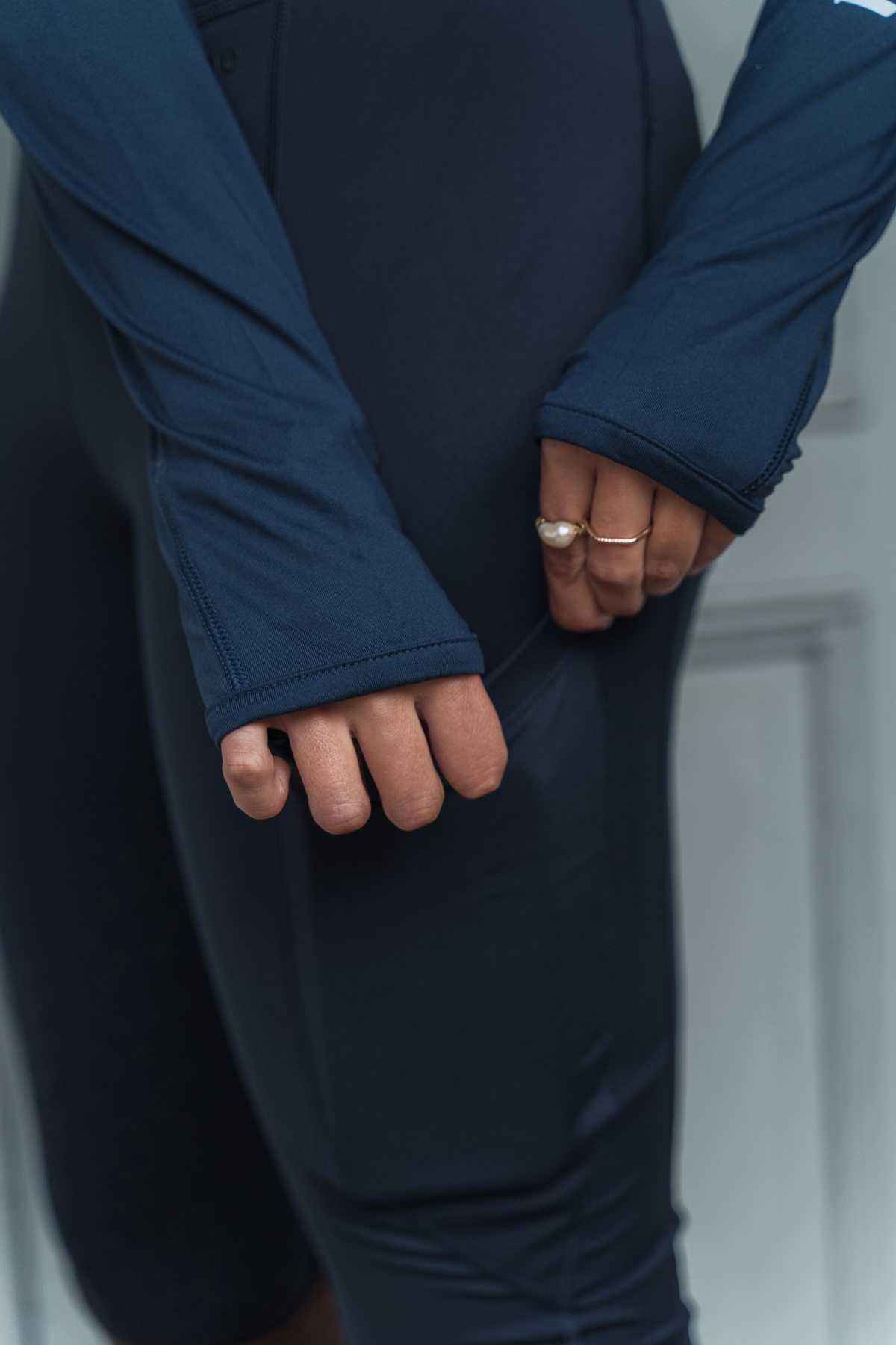- Tygblandning som tål svett och puls. Materialet andas och torkar snabbt för att hålla dig ventilerad och torr.